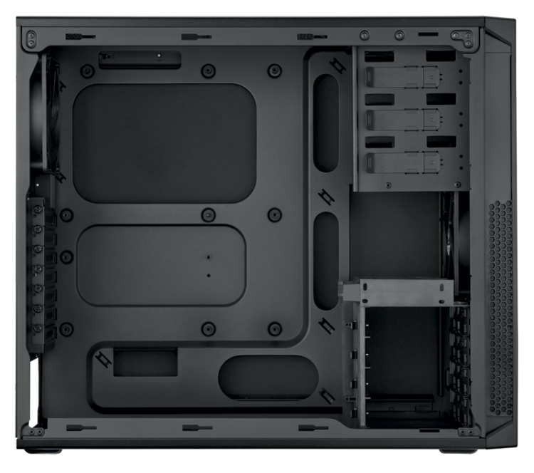 Bays: 3x 5,25 inch extern, 4x 3,5 inch intern, 4x 2,5 inch intern