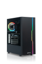 De Sharkoon RGB Slider Black is een zwarte behuizing met een glazen zijplaat en een LED strip aan de voorzijde. De LED strip is aan te sturen via een knop op de behuizing.